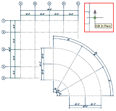 and Elevations For projects where you need to use Column Grid Labels, invariably those Column Lines and Labels need to travel through numerous documents such as Elevations and Sections. Illustrated to the right is an example of how I take the same Column Grid from my Floor Plan and drop it over my Sections. After some minor adjustments, the grid ends up working fairly well. By using the option to turn the Visibility of the X or Y-Axis Display Components Off, you can use the Column Grid as a series of lines rather than a Grid. Now if I could just find a way to link the Plan Grid to all of my Section and Elevation Grids I wouldn't have to run around and Grip Stretch them whenever the Plan changes. |